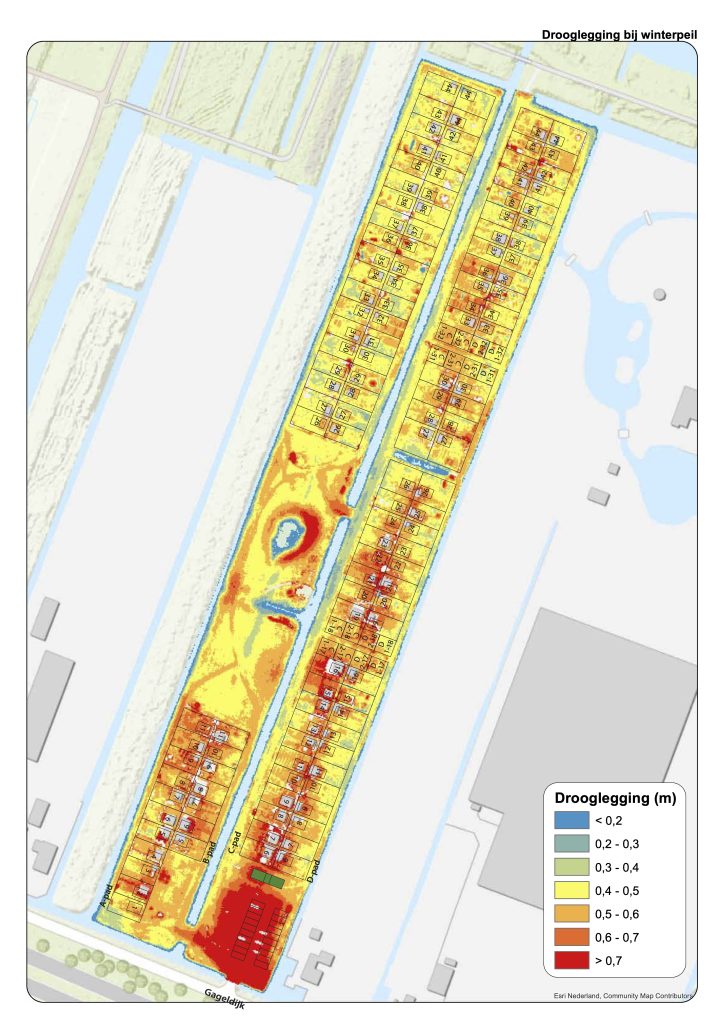 Er is een kaart beschikbaar waar op te zien is waar de grond bij ons laag is en waar eventueel iets zou moeten gebeuren en waar dus opgehoogd moet worden. Als het doorgaat, gaat het door per volgend jaar winter. De problemen die op tuinen kunnen ontstaan zijn ook afhankelijk van hoe je je tuin beheert. Het is dus goed om te kijken of je er zelf iets aan kunt doen. Sommige tuinen liggen namelijk lager. Dit kan natuurlijk zo zijn, maar kan ook te maken hebben met het omspitten van tuinen. Er kan dan bijvoorbeeld veel lucht inkomen. Vraag is: kun je er door je eigen beheer iets aan doen.