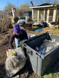 Afgelopen twee zondagen heeft de klusgroep puin geruimd in twee tuinen op het D-pad. De oude tuinders hadden daar een grote verzameling voorwerpen en afval achtergelaten. De klusgroep stak de handen in handschoenen en deed allerlei interessante ontdekkingen.