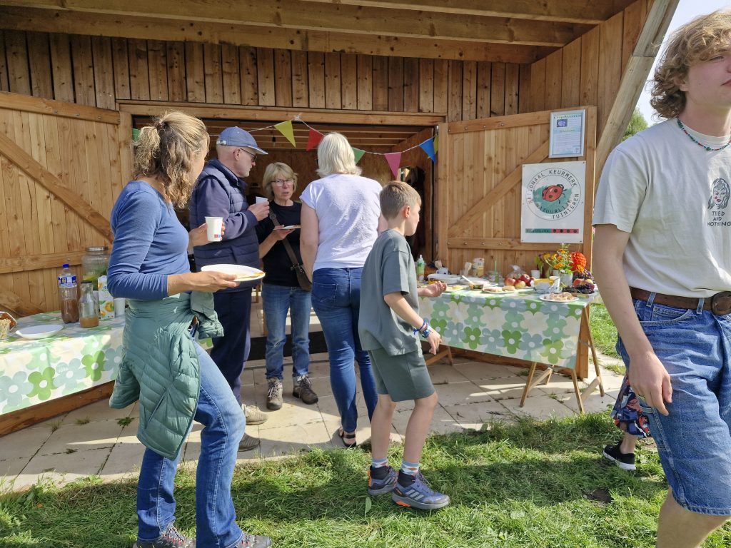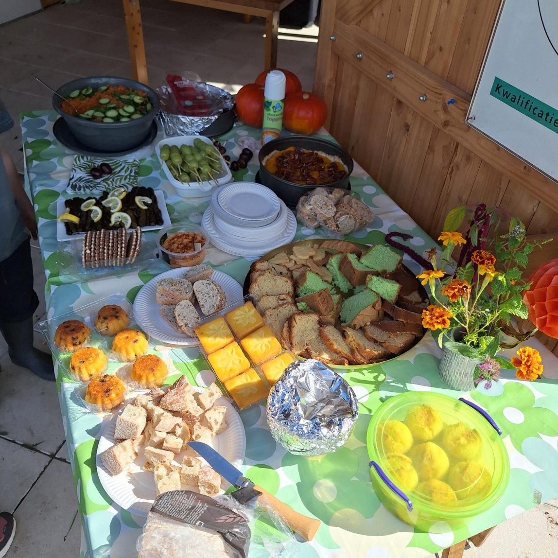 Zondag 14 september was het weer tijd voor het jaarlijkse oogstfeest. Gelukkig was het een prachtige zonnige dag en was het een mooie opkomst! En natuurlijk was het weer genieten van al het lekkers dat iedereen had meegebracht.